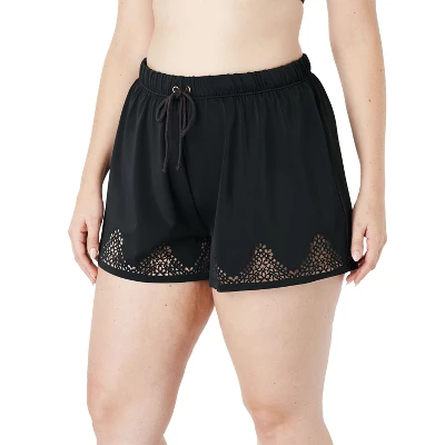 This loose, sporty short is made with a built-in brief and features a drawstring waist for a customized fit. Power-mesh lining for tummy control.
